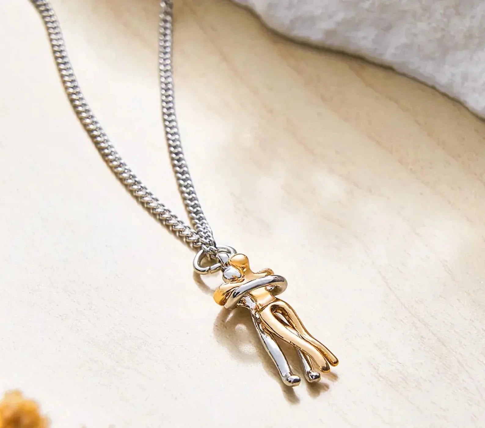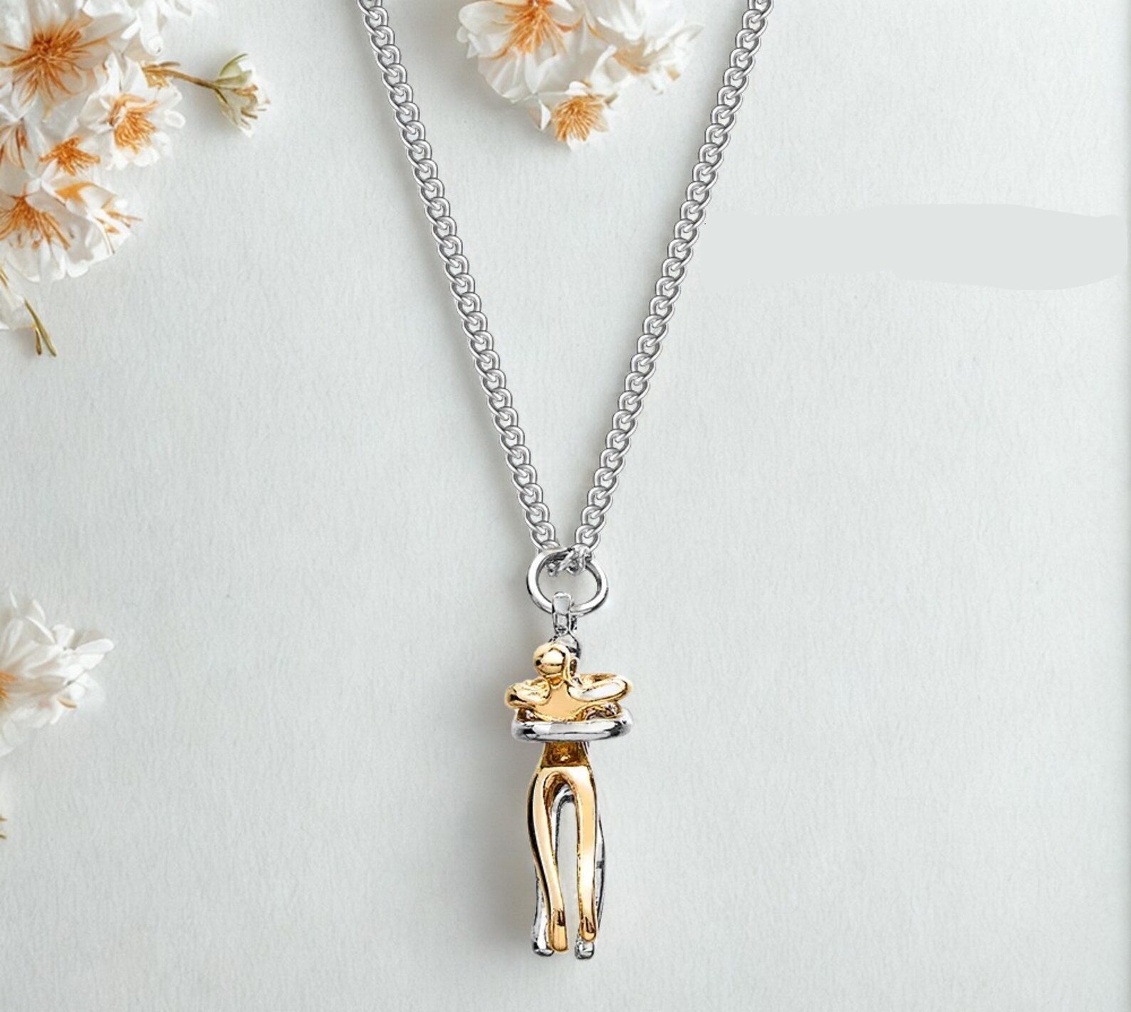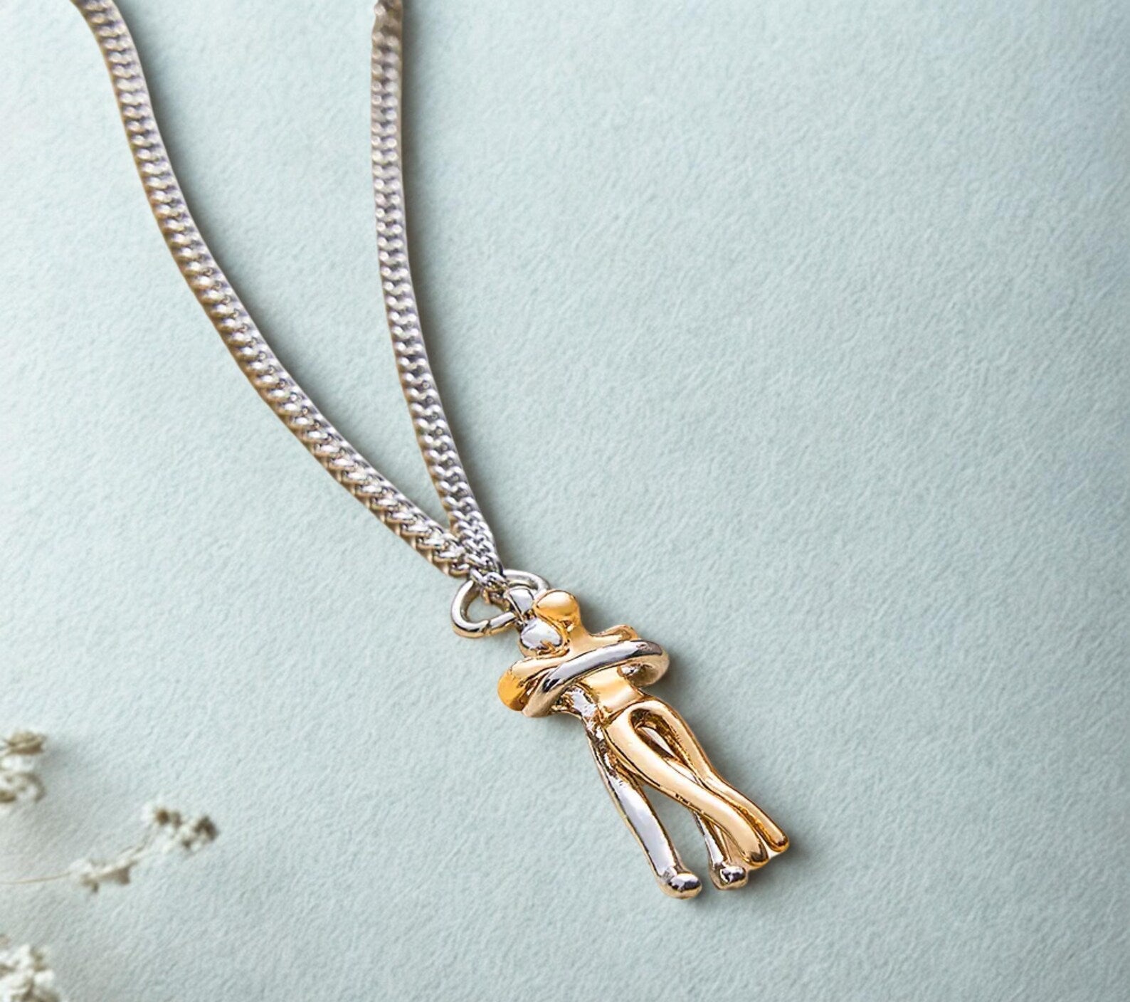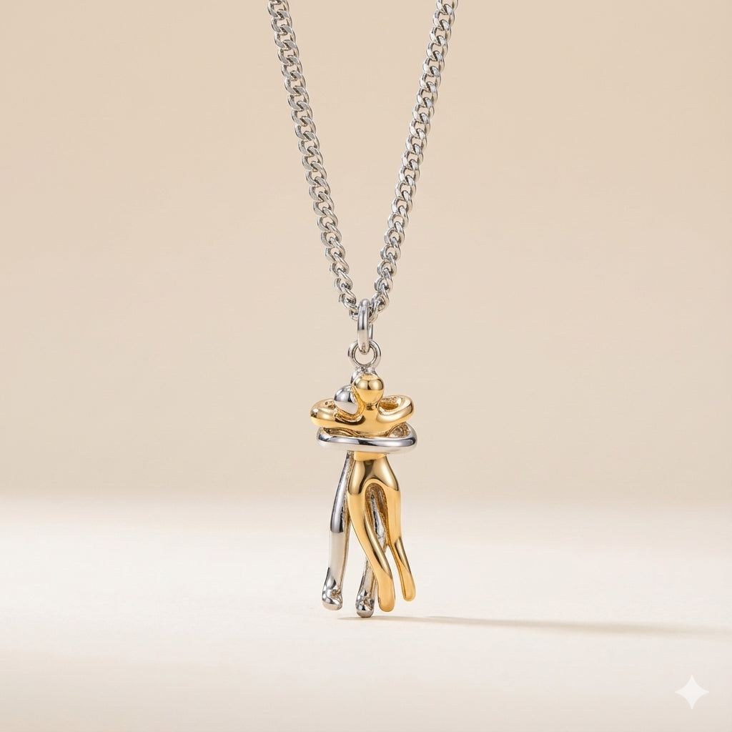 İki kişinin sımsıkı kucaklaşmasından ilham alan bu kolye, kalplerin birleştiği o özel anı ölümsüzleştiriyor. Her baktığınızda, sevdiğiniz kişiyle aranızda veya benzersiz bir bağ hissedeceksiniz.
