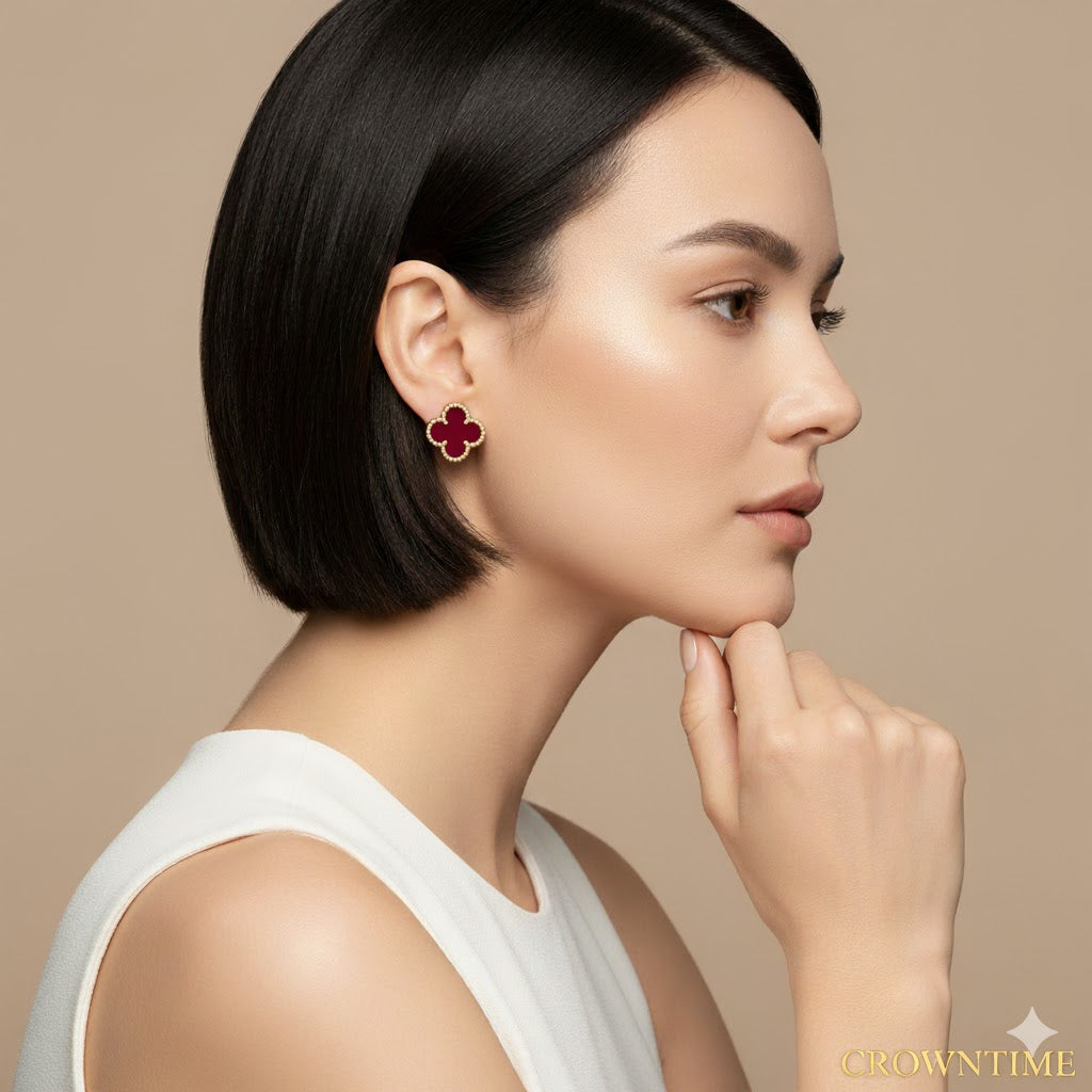 ✨ Van Cleef Vintage Alhambra Tarzı Küpe – Paslanmaz Çelik / 18K Altın Kaplama ✨