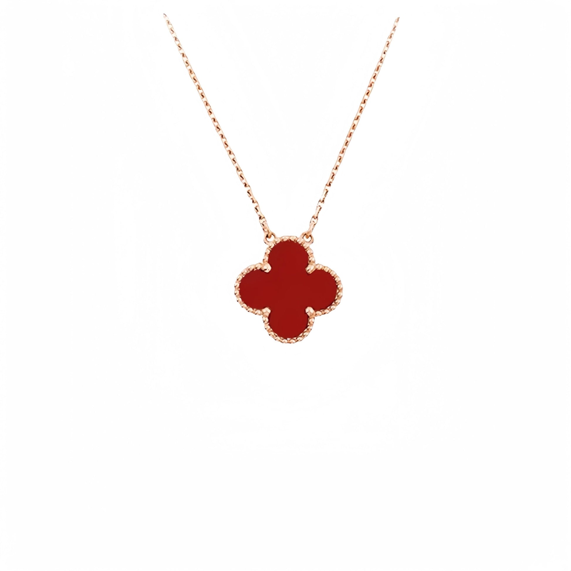 VANCLEFF Single Clover Necklace adds a sophisticated touch to your daily elegance with its minimalist design. The iconic clover motif brings together luck and grace, making every moment special.